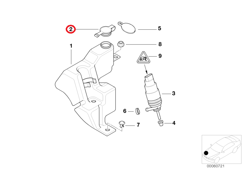 📍 Zastosowanie: korek zbiorniczka spryskiwaczy szyb („Washer reservoir cap”), montowany w starszych modelach BMW m.in. E30, E36, E34, E39, E38.