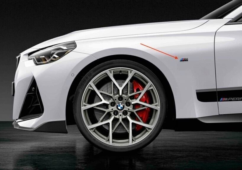 Dwa boczne emblematy z logo M w błyszczącym kolorze czarnym podkreślają dynamiczny wygląd Twojego samochodu. Lakierowane w błyszczącym kolorze czarnym, wytrzymałe i niepowtarzalne, doskonale nadają się do indywidualizacji wyglądu zewnętrznego.