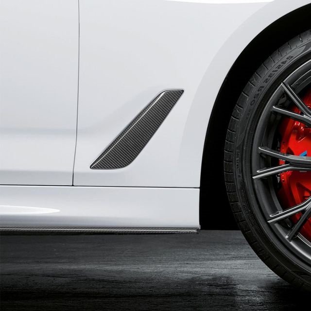 Oryginalna osłona nawiewu bocznego M Performance wykonana z włókna węglowego – carbon, przeznaczona do prawego przedniego błotnika BMW serii 5 G30 oraz G30 LCI. Ten element nie tylko podkreśla sportowy charakter pojazdu, ale również doskonale komponuje się z innymi akcesoriami z linii M Performance.