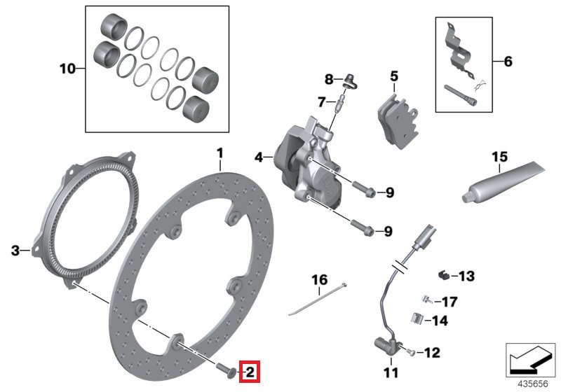 To mały, ale bardzo ważny element serwisowy — szczególnie przy wymianie tarczy hamulcowej lub remoncie przedniego układu hamulcowego.