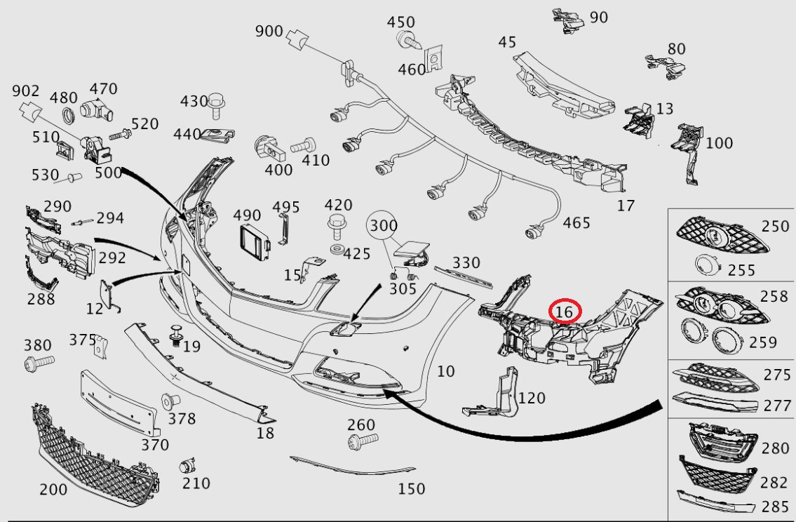 Oryginalna część Mercedes-Benz A2048854865 / A 204 885 48 65 to wspornik mocowania przedniego zderzaka (ang. bumper bracket / basic carrier) — element konstrukcyjny nadwozia stosowany w przednim zderzaku.