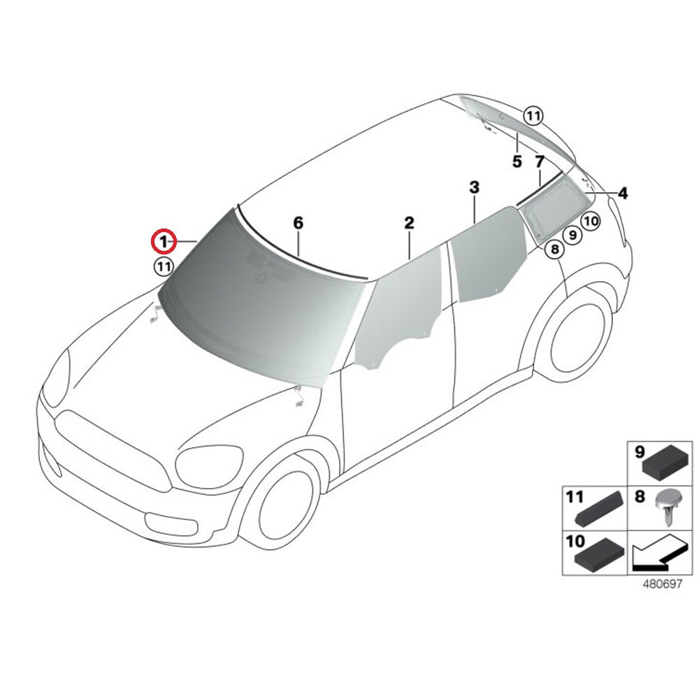 Słowa kluczowe: 51317380737, green windscreen MINI, przednia szyba OEM, 51-31-7-380-737, szyba czołowa MINI